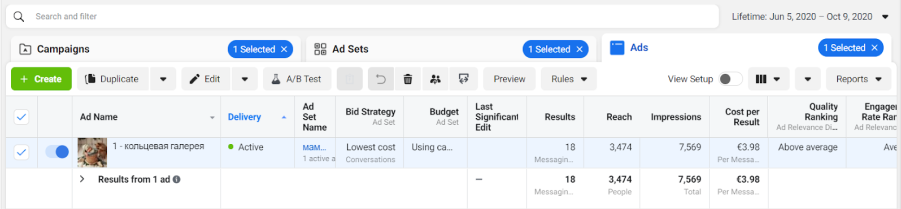 Процесс рекламной кампании: (с ноября 2019г. и до сих пор продолжаем работу)